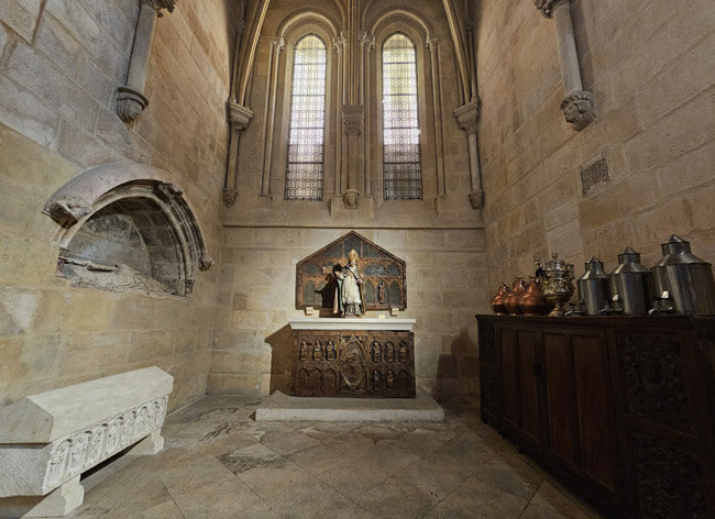 Igualmente encontramos en la capilla uno de los dos sepulcros románicos recuperados en la Capilla de San Enrique.