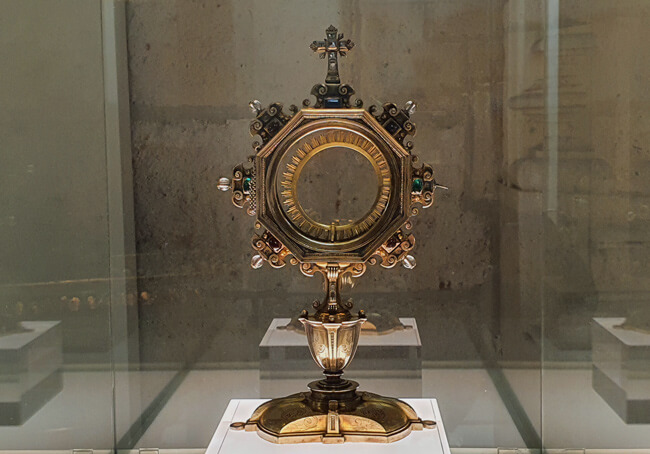Las custodias procesionales u ostensorios son piezas para acoger y exponer la Hostia Consagrada o el Santísimo Sacramento. Generalmente está hechas de oro, plata u otros metales preciosos. El papel de las custodias es especialmente relevante en la Iglesia Católica en la celebración de la fiesta del Corpus Christi. De hecho, es en la celebración de esta festividad en la que encontramos el origen de las custodias procesionales.