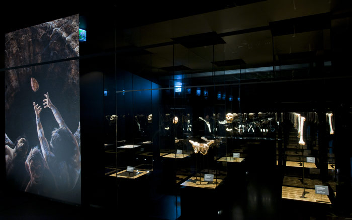Sin duda si hay algo que hace del MEH museo único es la exhibición de restos humanos fósiles originales, provenientes de los cercanos Yacimientos de la Sierra de Atapuerca. Comenzando por los restos de Homo antecessor (850.000 años de antigüedad) y pasando por los restos humanos mejor conservados del mundo (Miguelón, el cráneo 5, o la pelvis Elvis) conoceremos la evolución humana en Europa.